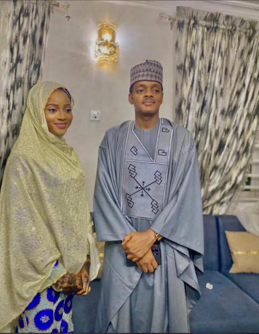 A video circulating online shows Yerima and his bride seated together during a traditional ceremony at her family home, with an elderly woman—believed to be a family member—sitting between them in line with northern cultural customs.