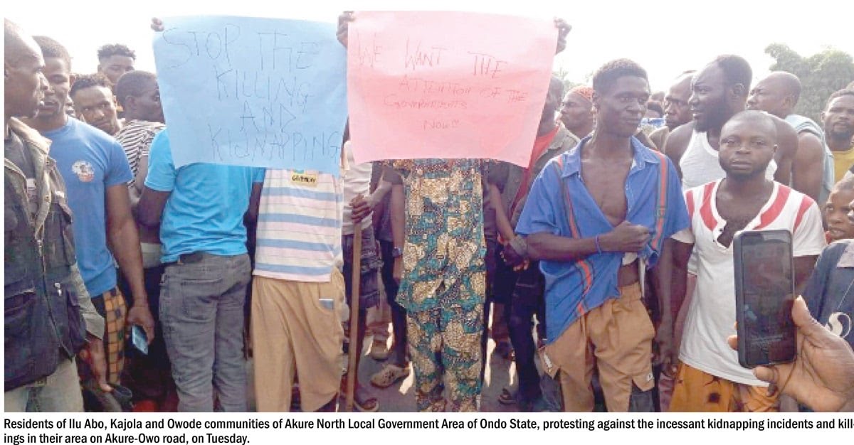 Many residents on Tuesday staged a protest that halted movement along the Jobele section of the Ibadan–Oyo Expressway in Afijio Local Government Area, as they demanded urgent action over increasing cases of kidnapping and banditry in the community.